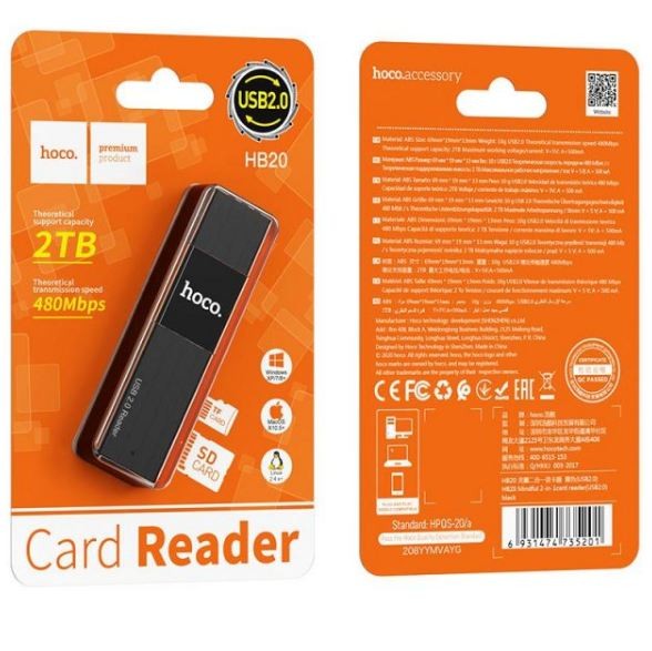 Card reader HOCO HB20 (microSD,SD, USB 2.0) black