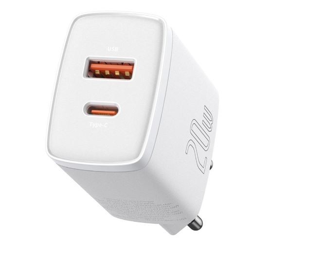 Charger Baseus (CCXJ-B02) (1xUSB-C;1xUSB 3A 20W) white