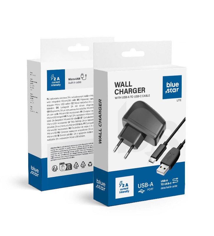 Charger Blue Star (TFK-TC-1095B) + cable "USB-C (Type-C)" 2A (10W) black
