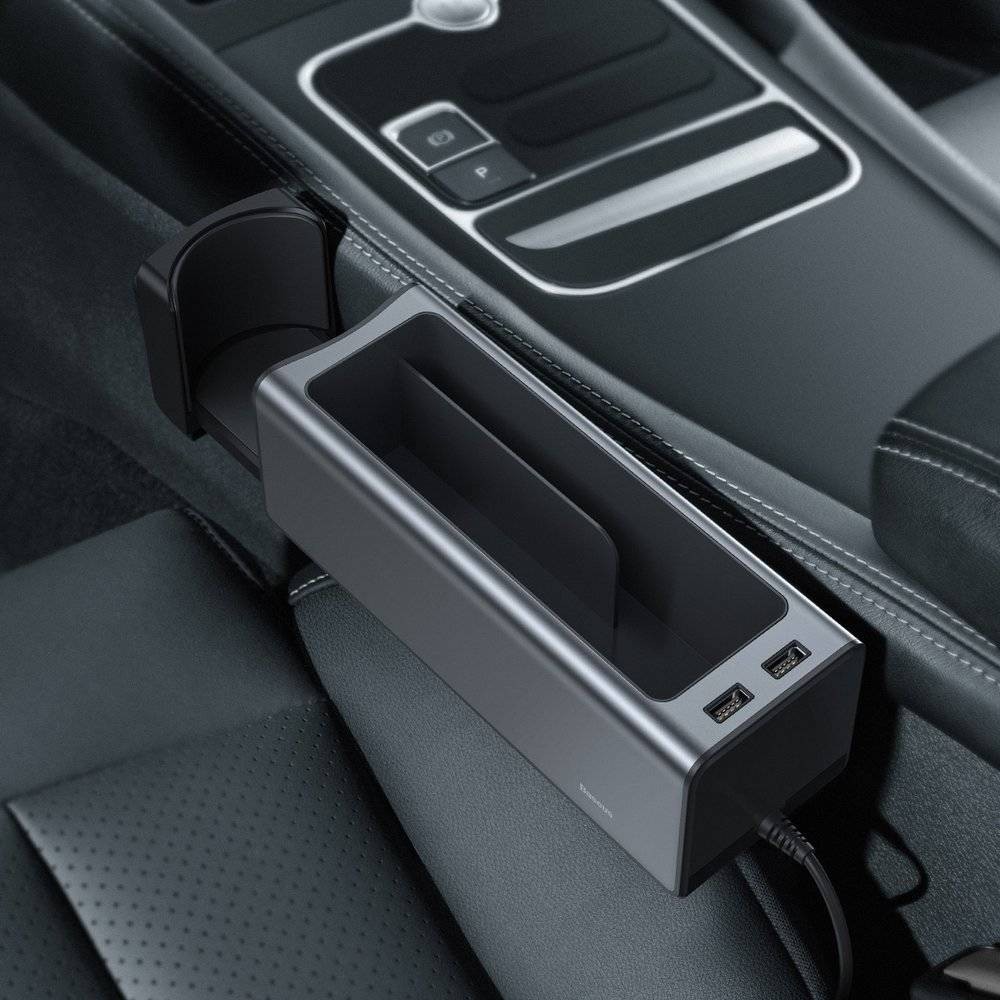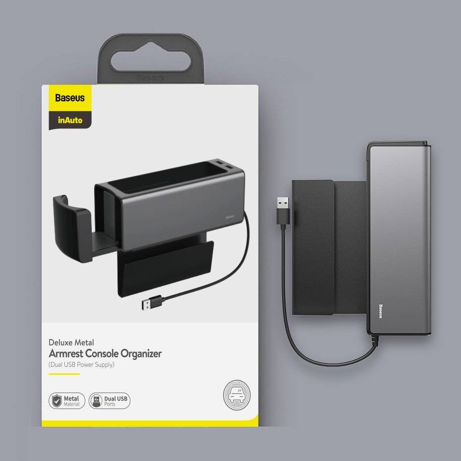 / Metal Armrest Console Organizer Baseus Deluxe dual USB black CRCWH-A01