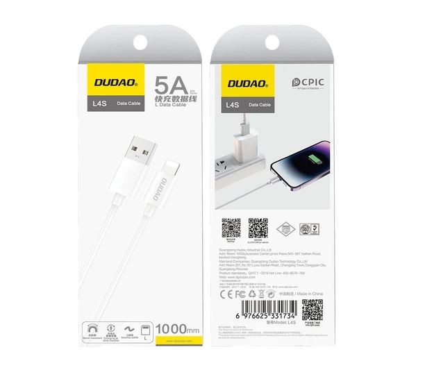 / USB cable Dudao (L4SL) lightning (2A) white (1m)