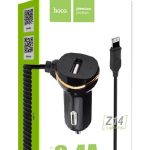 Автомобильная зарядка HOCO Z14 USB + "lightning" (5V 3.1A) черная