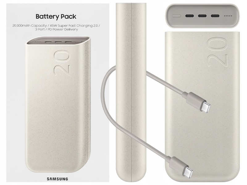/ Внешний аккумулятор POWER BANK POWER BANK Samsung (EB-P4520XUE) 45W 20000mAh (3xUSB-C) белый