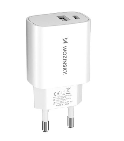 Сетевая зарядка Wozinsky (WGWCW) (1xUSB-C;1xUSB 3A 20W) белая