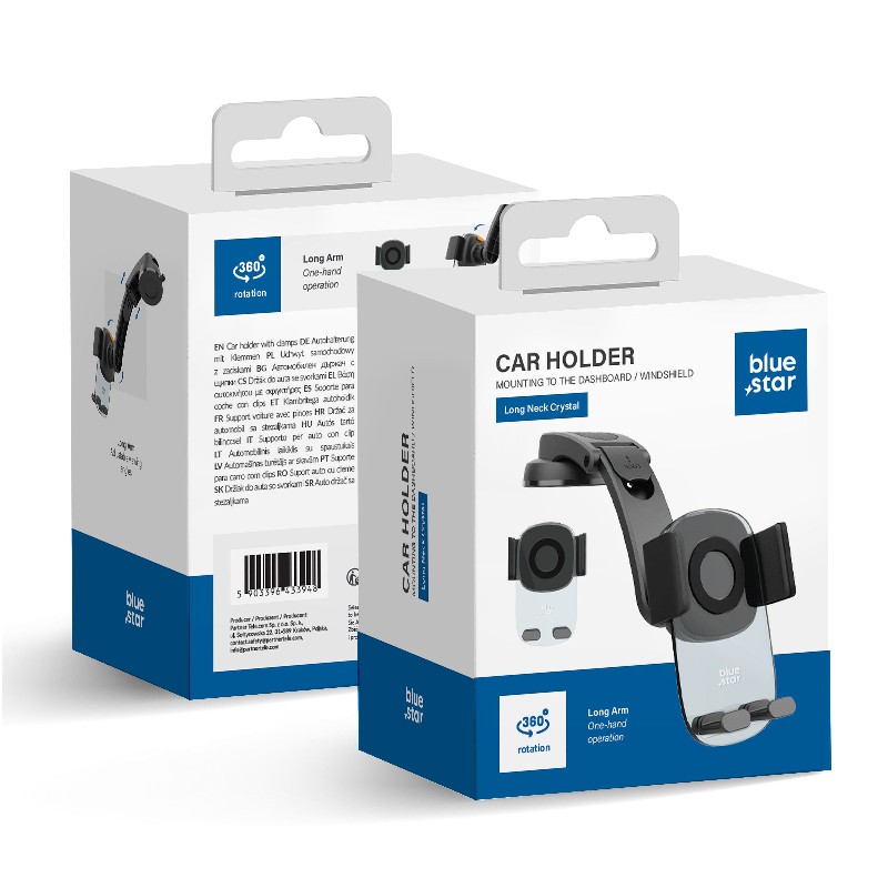 / Универсальный автомобильный держатель телефона Blue Star (Long Neck Crystal) черный