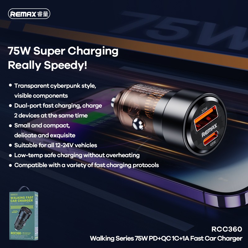 / Car charger Remax RCC360 75W USB-C/USB-A black