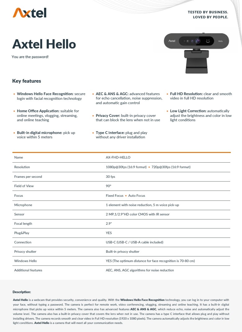 Webcam Axtel AX-FHD Webcam Hello kogus